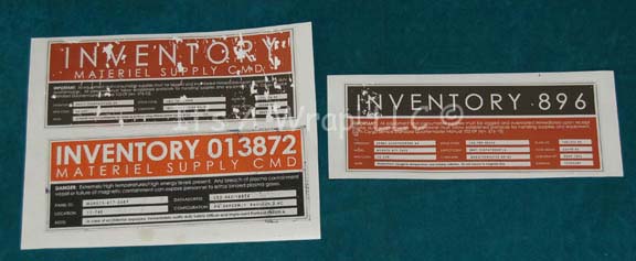 A set of three Starfleet inventory applications believed to be screen used in various episodes of Star Trek: Enterprise. The items are depicted with differing ‘Inventory’ headers and listed as ‘Materiel Supply CMD’. The items feature differing instructions and warnings conveyed with real world terminology and indicate their supposed loading … |