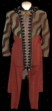 A costume featured in the Star Trek: Deep Space Nine episode “The Nagus”; wherein “Quark” (Armin Shimerman” temporarily becomes the “Grand Nagus” of the Ferengi Alliance. This costume is for wear by Barry Gordon in the role of the Ferengi “Nava”; it is a full-length, sleeveless, brown jumpsuit with stirrups … |
