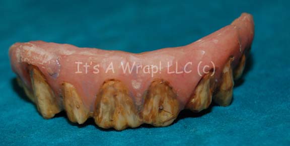 A set of special effects teeth created for use in the Star Trek: Deep Space Nine episode “Crossover” made for wear by ‘Stephen Gevedon’ in his portrayal of a Klingon. The item is a set of pink gums and gnarly looking teeth, discolored to fit the theme of Klingon characters, … |