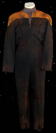A costume featured in the Star Trek: Deep Space Nine episode “The Visitor”; wherein “Jake Sisko” (Cirroc Lofton) lives out his life in search of the father supposedly taken by an accident in the engine room of the Defiant when he was 18. This costume is a future Starfleet uniform … |