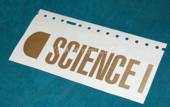 A set of metallic gold adhesive applications made for sets in Star Trek VII: First Contact through Star Trek X: Nemesis. The item is presented in the LCARS styled with an elongated half moon header application on the left. The item measures approx. 1.5 X just under 6.5 inches and … |