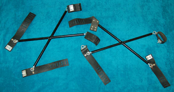 This sturdy pair of manacles was used during the production of Star Trek and are made of metal in an ‘X' formation painted black. At the end of each spoke is a black leather adjustable cuff with metal loops for padlocks to be attached (padlocks not included). Each frame measures … |