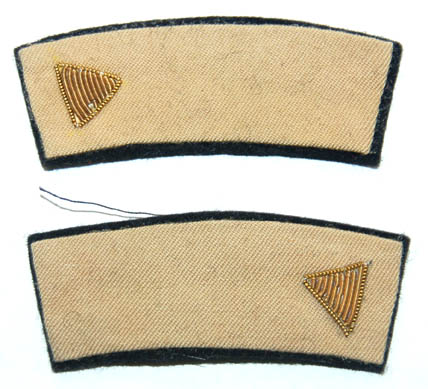 A pair of green medical division-rank strips featured on Starfleet uniforms in Star Trek I: The Motion Picture. The item is green fabric on a black felt board with a gold thread triangle on one end indicating the wearer to be a ‘petty officer'. This style of accent would have … |