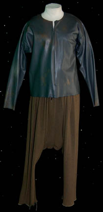 A costume featured in the Star Trek: The Next Generation episode “Firstborn”, wherein a mysterious friend appears to encourage “Alexander's” (Brian Bonsall) development into a Klingon warrior. This costume is a white, textured, long-sleeved, martial arts uniform with a zip up the back, with cuff and collar accents. The name … |