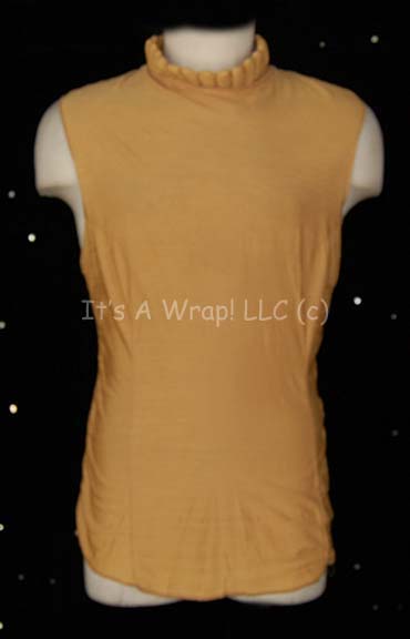 A costume undershirt believed to have been featured in various Star Trek feature films from “The Wrath of Kahn” to the opening scenes of “Generations. This item is a tan, sleeveless, Starfleet uniform undershirt in with a ribbed collar, clasps at the neck and a zip down the back. The … |