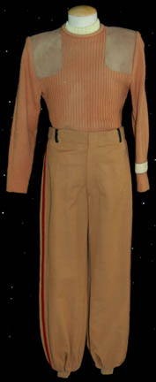 A costume featured in Star Trek V: The Final Frontier for wear by Leonard Nimoy and Greg Barnett as “Spock”. The costume is caramel colored wool trousers with red division stripes down the outside seams of the legs and a pair of white elastic bands in the spine of the … |