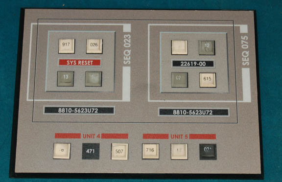 A prop button panel like those appearing variously on the set of the “Enterprise NX-01” in multiple episodes of Star Trek: Enterprise. The item is a sheet of smoked acrylic with beveled edges and a multi-colored graphical application adhered to the face with adhered rubber faux buttons. The item is … |
