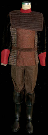 A costume lot similar to those featured in various episodes of the Star Trek: The Next Generation. The first costume is a long-sleeved, full-length gray jumpsuit consisting of a textured, ribbed, sweater sewn onto black boucle trousers with uneven white stripes from the episode “We’ll Always Have Paris”. The second … |