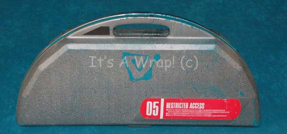 A pop item like those featured in various episodes of Star Trek: The Next Generation. This item is a light-blue, semi-circular, plastic carrying case painted metallic-silver and featuring a large, red, graphical application reading “RESTRICTED ACCESS”, a snap on either side that open to multiple sites for storing tools and … |