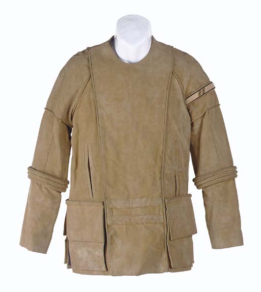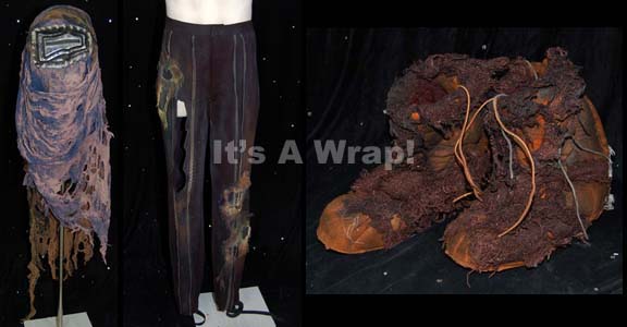 A lot of costume elements featured in the second Star Trek feature film “The Wrath of Khan”. This lot consists of black trousers, and fingerless gloves, intentionally distressed, with pieces of fabric sewn onto them in to denote patching and repair from ‘found objects’; a head wrap composed of multiple … |