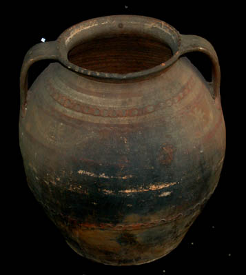 This large ceramic pot was used during the filming of Star Trek episodic television. It has handles on each side, raised detail and painted patterned. The surface is intentionally distressed to appear weathered. Measures approx. 16 x 15 inches diameter. |