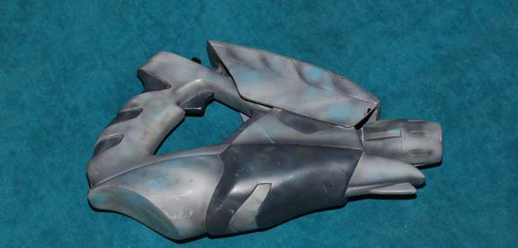 A prop item acquired for use in Star Trek feature films and episodic television. This item is a prop energy pistol, it is a very sturdy resin cast with a more ‘alien’ look than most of the hand held energy weapons used in Star Trek; it is painted gray and … |