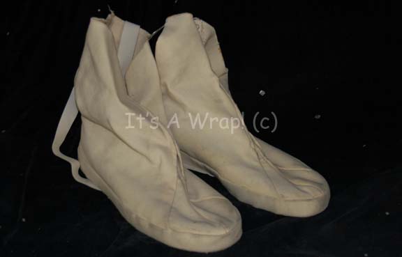 A pair of shoes featured in the first Star Trek feature film for use with the Class-D Starfleet uniforms. These shoes are Converse brand covered with white fabric that extends up the ankle, white straps and clasps to attach to the uniform. |