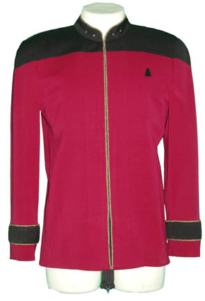 A costume featured in the Star Trek: Voyager episode “In the Flesh” for wear by “Admiral Bullock” portrayed by Tucker Smallwood. The item is a two piece Starfleet admiral's uniform composed of a pair of black trousers and a uniform jacket with a zip that runs from the top down, … |