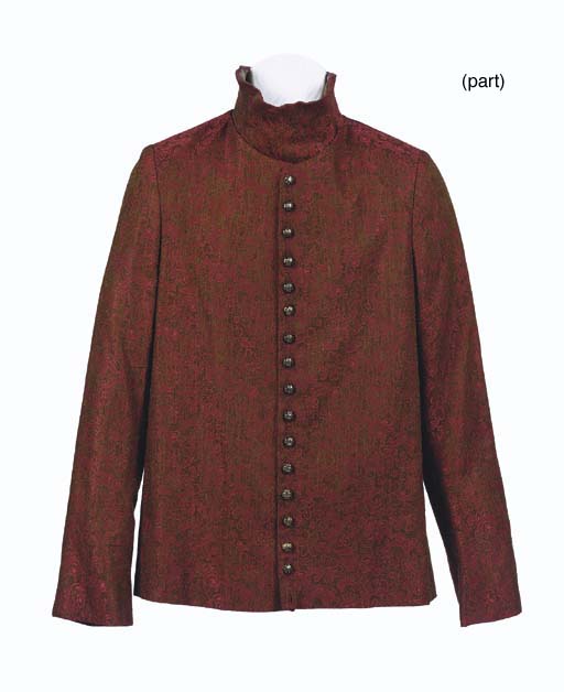 A jacket of red and green brocade, and a pair of green stretch-knit tights, with a distressed copy of the jacket used in the impaling scene, all with <I>Star Trek: The Next Generation</I> label inside inscribed <I>Brent Spiner</I> -- worn by Brent Spiner as Data playing <I>King Henry II</I> in … |