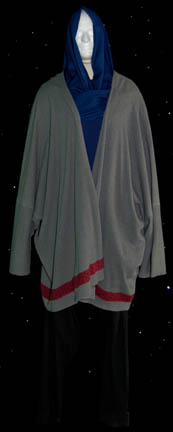 This costume was worn by one of “Zobral’s” (Clancy Brown) clan in the Star Trek: Enterprise episode “Desert Crossing” in which Zobral was the leader of a rebellion against the oppressive ruling Torothan clan on their homeworld. The costume includes black baggy pants, a blue short sleeved ribbed top, a … |