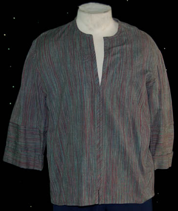 A costume featured in the Star Trek: Deep Space Nine episode “Honor Among Thieves”, wherein “Chief O'Brien” (Colm Meaney) infiltrates the Orion Syndicate to ascertain the identity of the Syndicate’s mole in Starfleet Intelligence. The costume is a long sleeved, olive colored shirt with thin, vertical, black stripes, and a … |