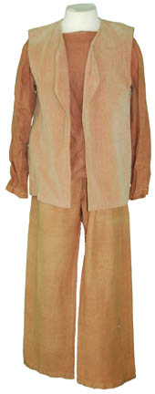 A costume featured in various Star Trek: Deep Space Nine episodes for wear by actors portraying Cardassian civilians and officials. Made up of grey trousers with a matching neoprene top, the costume comes with a costumer's tag reading ‘Mark Ricardi’. |