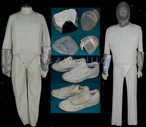 This great jumpsuit was worn by “Captain Picard” (Patrick Stewart) in the Star Trek: The Next Generation episode “Suddenly Human” where he discovers a human boy being raised by aliens who murdered his parents. Picard's racquetball suit is gray fabric that has small patterned bumps in the front and puckered … |