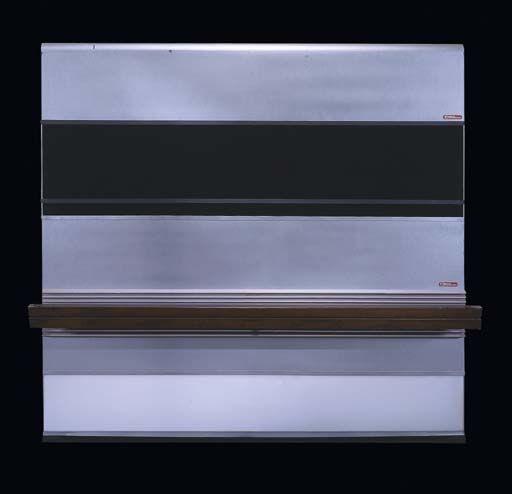 Two theatrical wall flats made of wood and particle board painted as aluminum with woodgrain hand rail and black acrylic plastic accent band -- <I>8x8ft.</I> -- as seen on the outside main corridor wall of the <I>Enterprise-D</I>, made for "These Are The Voyages" in <I>Star Trek: Enterprise</I> (2) |