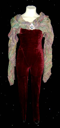 Serving drinks, running the gaming tables, and keeping the patrons' interest is all part of the job when you’re one of “Quark’s” (Armin Shimerman) “Dabo Girls”. It’s easy to appear interesting with a costume like this. It is comprised of a burgundy velvet jumpsuit with a gauzy multicolored wrap that … |