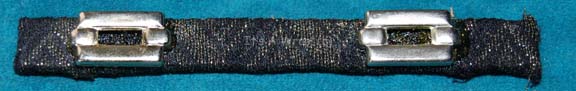 A Starfleet officer’s campaign ribbon created for Star Trek VI: The Undiscovered Country and of the style appearing in Star Trek VII: Generations. The item is fabric covered sheet plastic with twin pin backs which appears as multi-colored gold sparkle fabric with black raised zigzags and two matching silver colored … |