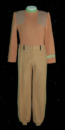 Ordered to ‘Nimbus III', the “Enterprise-A” crew respond to a hostage crisis in these commando style field duty uniforms, caramel colored wool sweater with matching pants, and a green medical division undershirt, this costume was featured in Star Trek V: The Final Frontier for wear by DeForest Kelly as “Dr. … |