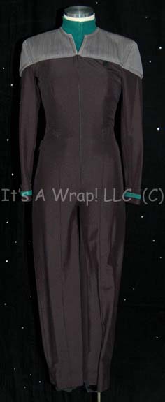 A costume featured in various seventh season episodes of Star Trek: Deep Space Nine. A Starfleet uniform in the style that made its first appearance in Star Trek VIII: First Contact; comprised of a long-sleeved, full-length black jumpsuit with gray quilted shoulders, a form fitting elastic waistband sewn inside with … |