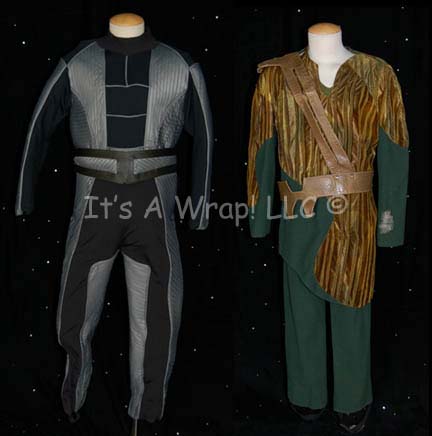 A lot of two costumes featured in various episodes of Star Trek: Deep Space Nine. The first costume is from the episode “The Circle” and is that of the Kressari captain supplying “The Circle” with its weapons and consists of long-sleeved, ribbed, green-velvet jacket with textured, vertical stripes and dark … |