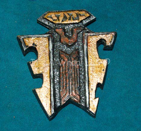 A Klingon themed costume badge like those worn by “Worf” (Michael Dorn) in various episodes of Star Trek: Deep Space Nine. Made from molded resin with a molded wire hanger the item is nearly identical to the baldric badge appearing on Worf in later episodes of the series. The item … |