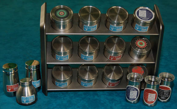 A set of three metal containers appearing variously in episodes of Star Trek: Enterprise on the set of the “Enterprise NX-01” sickbay. Two of the items are stainless steel with clear plastic lids that feature flip latches and graphical applications, the third is a decontamination gel vat with a matching … |