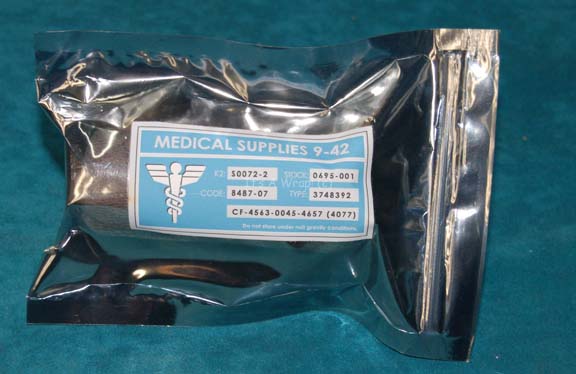 A prop Starfleet medical application believed to have been created for use in Star Trek: Enterprise episodes like “Dear Doctor” and “Marauders”. The item is a rolled length of adhesive wrap around a wooden peg inside a zip sealed metallic silver colored anti-static bag. The face of the bag is … |