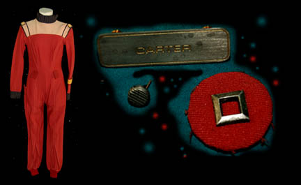 A Starfleet uniform jumpsuit appearing in various Star Trek feature films. The costume is a red jumpsuit with a tan shoulder and chest, a ribbed collar and cuffs, both black indicating the wearer to be a crewman. The costume comes with an affixed yellow division stripe on the left forearm, … |