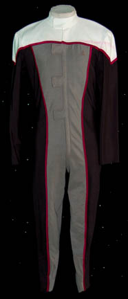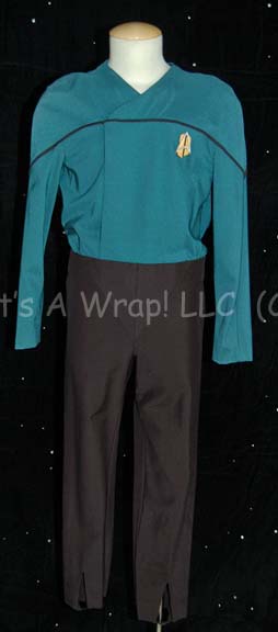 A costume featured in the series finales of both Star treks: The Next Generation and Voyager. This costume is a future Starfleet uniform consisting of a long-sleeved, full-length, jumpsuit in Sciences Blue, a false, wrap-around style, a black horizontal piping across the front, black trousers with stirrups for the feet, … |