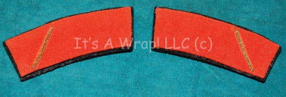 A pair of engineering red division-rank strips like those featured on Starfleet uniforms in Star Trek I: The Motion Picture. The item is red fabric on a black felt backing with a thin gold thread embellishment. This style of accent would have appeared on Starfleet Class-B, C, and D uniforms. … |