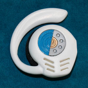 A cast resin prop made for use by “Hoshi Sato” (Linda Park) in her role and few others as communications officer on the “Enterprise NX-01”. The item is a white resin earpiece with metallic silver and blue painted accents with a foam piece for easier wear measuring approx. 2.75 X … |