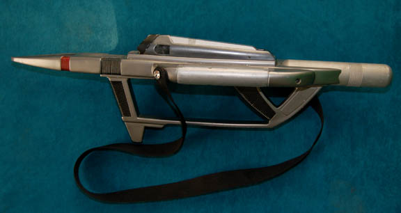 A prop weapon used in various episodes of Star Trek: Voyager. The item is resin cast with a metal stock, a working light in the scope powered by a series of 6 AA sized 1.5volt batteries housed in the metal stock accessed by unscrewing the end and activated by a … |