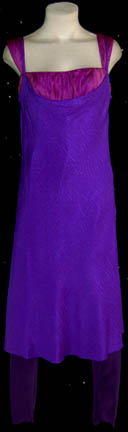 The “Risan's” are from the planet Risa and were featured in the Star Trek: Deep Space Nine episode “Let He Who is Without Sin…”. The male costume lot includes a blue mesh fabric top with built-in blue spandex shorts and two pairs of purple crinkled fabric trousers. |