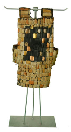 A costume made for actors portraying ‘Suliban' prisoners in a Tandaran detention camp in the Star Trek: Enterprise episode “Detained”. The costume is comprised of a hooded red jumpsuit and a diamond patterned tunic with belt loops for the corresponding leather belt. The jumpsuit features a ‘MUTO Little, Los Angeles’ … |