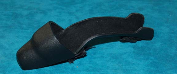 A prop phaser holster like those appearing variously in Star Trek episodic television and feature films. The item is black vacuum formed plastic with a black felt interior lining with Velcro fabric strips for attachment to a corresponding costume (sold separately). The item measures approx. 2 X 2 X 7.5 … |