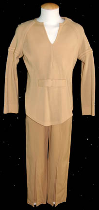 A khaki Class-B long sleeved top with khaki trousers featured in Star Trek I: The Motion Picture. The lot comes with an unattached plastic bio-monitor, a pair of engineering red colored division strips for the shoulders, and a red backed Epsilon IX assignment patch for the left breast. The costume … |