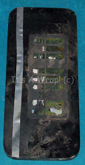 A prop LCARS (Library Computer Access and Retrieval System) button panel like those appearing in various episodes of Star Trek: The Next Generation. The item is a sheet of black acrylic with a metallic silver adhesive detail strip up the left side and a bank of distressed buttons and numeric … |