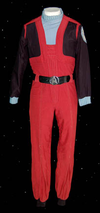 A full length red jumpsuit with black sleeves and powder blue cuffs, neck, and accents, this uniform also features a powder blue colored ‘Earthbase' personnel shoulder patch on the left arm depicting the ‘Sol system’. The waist features a pair of sewn in belt loops for the included black leather … |