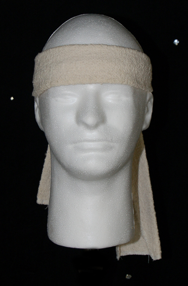 A strip of off white folded over linen created for wear by Leonard Nimoy in his portrayal of “Spock” in Star Trek IV: The Voyage Home. The item measures approx. 43 X 2 inches with some smudging and discoloration indicative of use. |