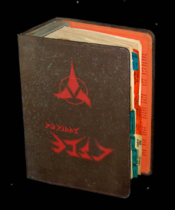 The Klingons are a humanoid warrior civilization originally from the planet Qo'noS but now a strong and revered interstellar military power seen throughout the Star Trek anthology. This is a modified payroll book that has been made to appear Klingon by silk-screening on a red Klingon emblem on the spine … |