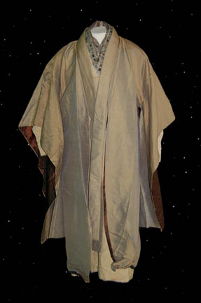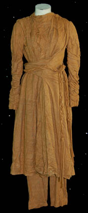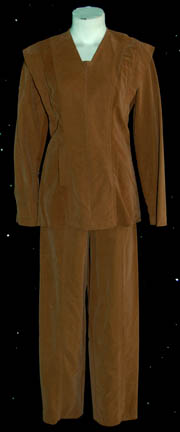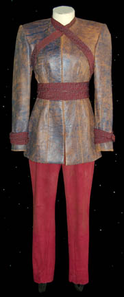 This costume was featured in the Star Trek: Voyager episode “Sacred Ground”. It has a tan tunic with ruffled sleeves, pleats up the front and back and an attached sash that snaps at the side. Matching tan trousers accompany the tunic, as does a braided belt with tassels. Costume comes … |