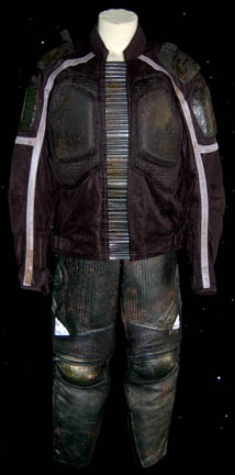 A costume featured in the Star Trek: Enterprise episode “The Anomaly” for wear by actors portraying Osaarian Pirates in the Delphic Expanse. The costume is a ‘First Gear' name brand motorcycle jacket and pants with multiple crash protection placements, size adjusting straps, zips, and reflective safety strips. The costume has … |