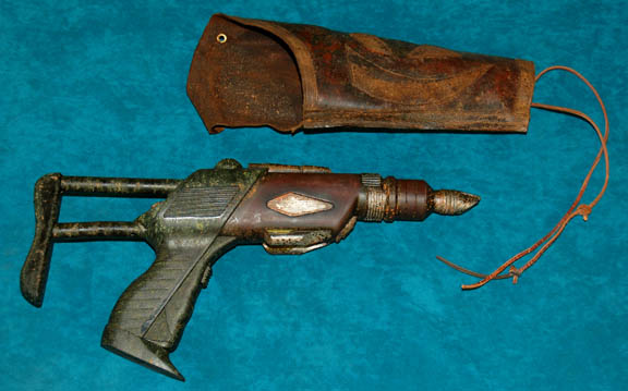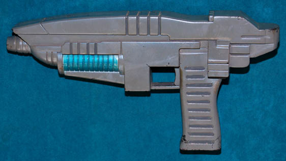 A prop hand weapon featured in various Star Trek: Enterprise episodes like "The Andorian Incident" and "Cease Fire". The item is cast rubber colored blue with a shiny metallic finish, and features blue plastic accent in the barrel. It has been moderately distressed for appearance and measures approx. 13 X … |