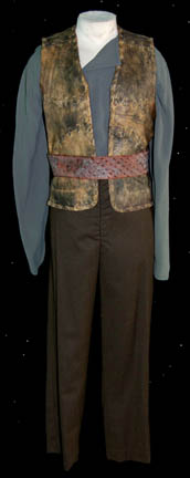A pair of character costumes featured in the Star Trek: Deep Space Nine episode “Invasive Procedures”. Worn by “Smallville” star John Glover during his portrayal of “Varad” whose band of terrorists took over “Deep Space Nine” and stole the “Dax” symbiont from “Jadzia” (Terry Farrel), this costume is made up … |
