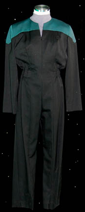 A costume featured in various episodes of Star Trek: The Next Generation and then reused in the seventh Star Trek feature film. This costume is a long-sleeved, full-length, black uniform jacket featuring Operations Gold division colors across the chest, back, sleeves, and in piping around the collar; a Velcro patch … |